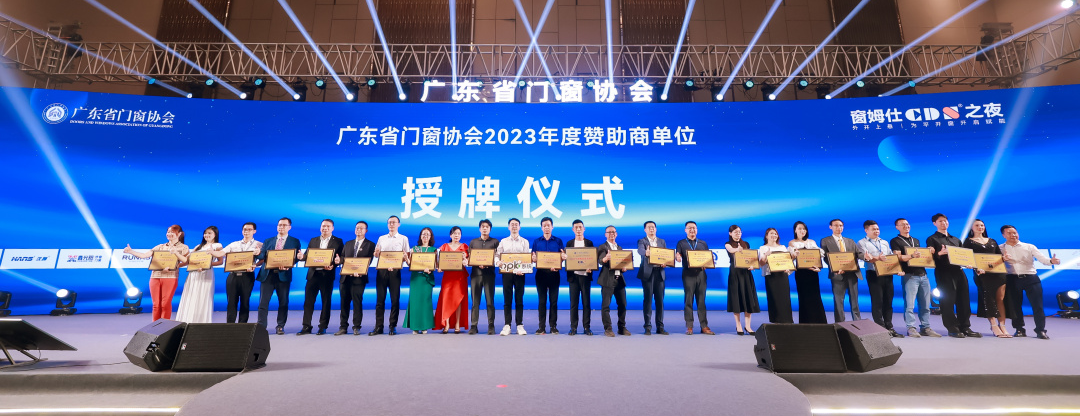 为感谢会议冠名单位欧派克滑轮、晚宴冠名单位窗姆仕CDS门窗系统以及22家赞助单位对本次大会的鼎力支持,答谢晚宴进行了赞助商授牌仪式。